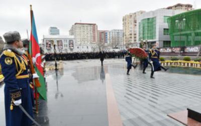 Президент Азербайджана Ильхам Алиев посетил мемориал памяти жертв Ходжалинской трагедии "Крик матери" ("Ana harayı").