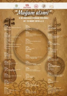 Bakıda Heydər Əliyev Fondu, Mədəniyyət və Turizm Nazirliyi, Azərbaycan Milli Elmlər Akademiyası, Bəstəkarlar İttifaqı və Azərbaycan Milli Konservatoriyası tərəfindən martın 7-dən 14-dək “Muğam aləmi” V Beynəlxalq Muğam Festivalı keçiriləcək. Festivalın bədii rəhbəri Xalq Artisti, UNESCO-nun “Sülh artisti”, Bəstəkarlar İttifaqının sədri, professor Firəngiz Əlizadədir.
