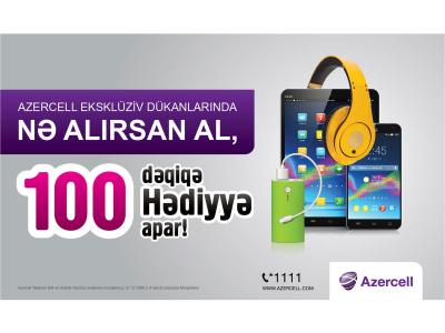 Şirkətdən verilən məlumata görə, martın 1-dan etibarən Azercell-in Eksklüziv mağazalarında istənilən aylıq internet paketlərə, tarif paketlərə (GencOL, Hədsiz, Hedsiz Zəng, Hədsiz İnternet, Kombo, Biznes 200) qoşulan və yaxud istənilən telefon modeli və ya aksesuar əldə edən abunəçilərə şəbəkədaxili 100 dəqiqə danışıq həcmi hədiyyə veriləcək.