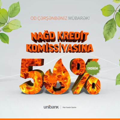 Unibank поздравляет каждого с «Од чершенбеси». Пусть тепло очага согревает Ваши сердца и наполняет дом уютом! А свои планы на весну и создать весеннее настроение Вы можете, взяв наличный кредит в Unibank, в рамках кампании «Sizin üçün olsun» . До 19 марта, каждый, кто обратится в Unibank, получит 50-процентную скидку на комиссию наличных кредитов. Годовая эффективная процентная ставка кредита начинается от 13 процентов (годовая от 23 процентов). Кроме этого, кредит выдается с льготным периодом на три месяца. Клиенты не будут оплачивать основную сумму ежемесячных платежей первые три месяца, оплата начнется с четвертого месяца.