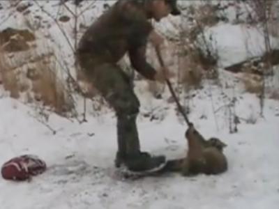 Gənc tələyə düşmüş vaşaqı görərək onu xilas etməyə tələsib.