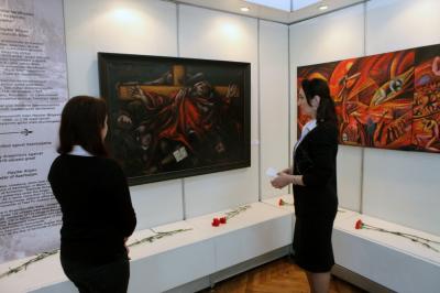 Sərgidə muzeyin fondlarında saxlanılan və muzeyə yeni daxil olmuş Azərbaycan xalqının başına gətirilmiş dəhşətləri özündə əks etdirən Sabir Çopurovun, Nazim Məmmədovun, Cavid Bayramlının, Sara Manafovanın, Əşrəf Heybətovun, Rahib Qarayevin, Mehriban Şəmsəddinskayanın 25 rəsm və heykəltəraşlıq nümunələri nümayiş olunub.