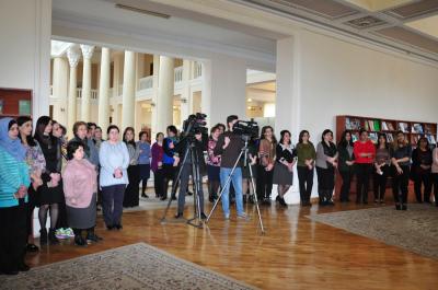 Milli Kitabxananın direktor müavinləri Ədibə İsmayılova və Mələk Xanım Hacıyeva çıxış edərək mart qırğınlarından söz açıblar.