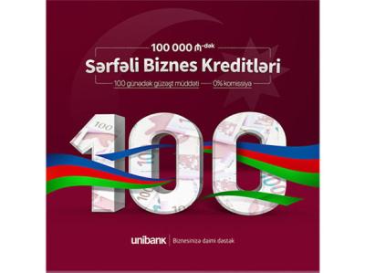 "Хотите вложить большие деньги в бизнес? Сейчас вы можете получить бизнес-кредиты в Unibank на очень выгодных условиях. В связи со 100-летием Азербайджанской Демократической Республики в Unibank сейчас проводится кредитная кампания. В рамках кампании, владельцы бизнеса смогут получить кредит суммой до 100 000 манатов с льготным периодом до 100 дней", - говорится в сообщении.