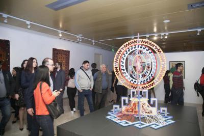Затем гости ознакомились с выставкой работ членов Союза художников Азербайджана Эльшана Сарханоглу и Эльдара Бабазаде, созданных в жанре инсталляций, живописи и графики. Экспонируются также ковры Губа-Ширванского типа конца XIX века из коллекции Азербайджанского музея ковра, основные мотивы которых авторы проекта творчески преобразовали в своих произведениях.