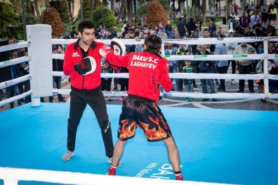 Профессиональные боксеры из Аргентины, Испании, Украины, России и Азербайджана вчера (второго мая) вышли на тренировку под открытым небом. На ринге на площади Фонтанов общественности были представлены участники турнира, который состоится четвертого мая в Бакинском дворце спорта (Дворец ручных игр).