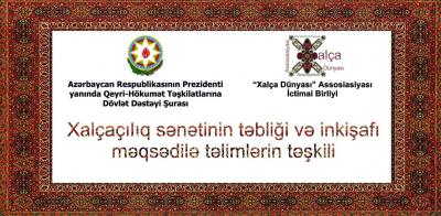 “Xalça Dünyası Assosiasiyası” İctimai Birliyi (İB) “Xalçaçılıq sənətinin təbliği və inkişafı məqsədilə təlimlərin təşkili” layihəsinin icrasına start verib.
