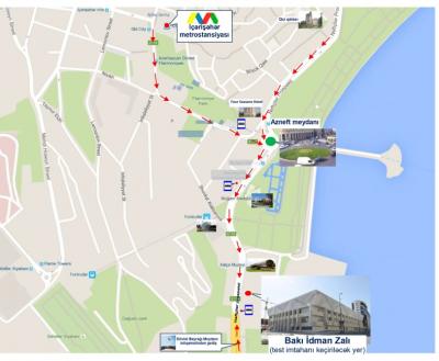 Test imtahanının keçiriləcəyi Bakı İdman Zalına getmək üçün naviqasiya məlumatları nazirliyin internet səhifəsində yerləşdirilib.