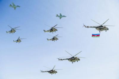 Azərbaycan ordusu hərbi təyyarə və helikopterlərin iştirakı ilə parada hazırlıqlarını davam etdirir.