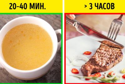 Keçək qidalara, mayelərə və onların həzm olunma müddətinə: