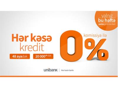 Bankdan verilən məlumata görə, şənbə günü də daxil olmaqla, Unibankdan nağd kredit götürən hər kəs bu kampaniyadan faydalanacaq.