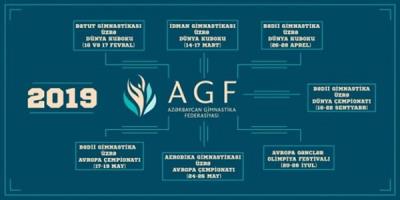 AGF-dən verilən məlumata görə, cari il federasiya yenidən zəngin iş planı ilə çalışaraq 2019-cu ilə fevralın 16-17-də batut gimnastikası üzrə dünya kuboku ilə start verəcək. Bir ay sonra – martın 14-17-də meydança idman gimnastlarının olacaq. Belə ki, ölkəmizdə dördüncü dəfə idman gimnastikası üzrə dünya kuboku təşkil olunacaq. Aprel və may ayları isə bədii gimnastların çıxışları ilə əlamətdar olacaq. Aprelin 26-28-də bu növ üzrə dünya kuboku, mayın 17-19-da isə Avropa çempionatı keçiriləcək.