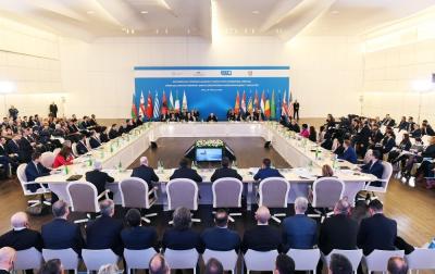 Azərbaycan Respublikasının Prezidenti İlham Əliyev toplantıda iştirak edir.