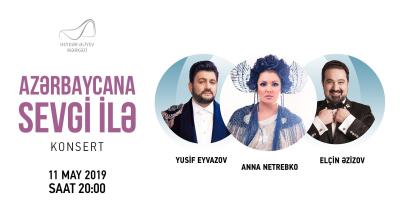Mayın 11-də opera sənətinin tanınmış nümayəndələri Anna Netrebko, Yusif Eyvazov və Elçin Əzizovun iştirakı ilə Heydər Əliyev Mərkəzində “Azərbaycana sevgi ilə” konsert proqramı təqdim ediləcək.