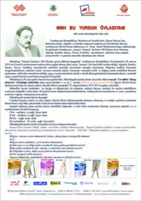 Mədəniyyət Nazirliyinin, Qazax Rayon İcra Hakimiyyətinin, Ağstafa və Şəmkir regional mədəniyyət idarələrinin dəstəyi, Azərbaycan Dövlət Rəsm Qalereyası və Xətai Sənət Mərkəzinin birgə təşkilatçılığı ilə görkəmli Azərbaycan yazıçısı İsmayıl Şıxlının 100 illiyinə həsr olunmuş Ağstafa, Şəmkir, Qazax, Tovuz, Gədəbəy rayonlarının sakinləri olan uşaqlar, yeniyetmələr və gənclər arasında “Mən bu yurdun övladıyam” adlı rəsm müsabiqəsi elan edilib.