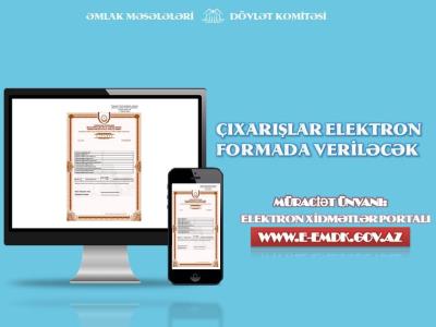 Əmlak Məsələləri Dövlət Komitəsindən Trend-ə verilən məlumata görə, aprelin 18-dən etibarən əmlakını rəsmi qeydiyyata almaq istəyən şəxs müvafiq olaraq müraciət etdikdə komitənin ərazi reyestr ofislərində çıxarışlar 1,3,7,10 iş günündə yalnız elektron qaydada hazırlanacaq. Elektron çıxarışlar isə Elektron Hökumət portalına yerləşdiriləcək. Hüquq sahibinin çıxarışı həmin portal vasitəsilə real vaxt rejimində əldə etməsi imkanı yaradılacaq. Daha sonra həmin çıxarış vətəndaşın “Elektron hökumət” portalındakı şəxsi kabinetinə yerləşdiriləcək. Şəxsi kabineti olmadıqda isə bazada saxlanılan çıxarış sonradan şəxsi kabinet yaradıldıqdan sonra avtomatik olaraq hesaba transfer olunacaq.