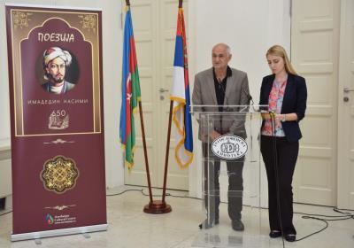 Azərbaycan Respublikasının Prezidenti İlham Əliyevin “Böyük Azərbaycan şairi İmadəddin Nəsiminin 650 illik yubileyinin qeyd edilməsi haqqında” 2018-ci il 15 noyabr tarixli Sərəncamına əsasən, ölkəmizin Serbiyadakı səfirliyinin təşəbbüsü və Belqrad şəhərində fəaliyyət göstərən Azərbaycan Mədəniyyət Mərkəzinin dəstəyi ilə iyunun 18-də dahi Azərbaycan şairi İmadəddin Nəsiminin serb dilinə tərcümə edilmiş seçmə şeirlərindən ibarət kitabının təqdimat mərasimi keçirilib, həmçinin “Nəsimi” filmi ilk dəfə serb dilində nümayiş olunub.