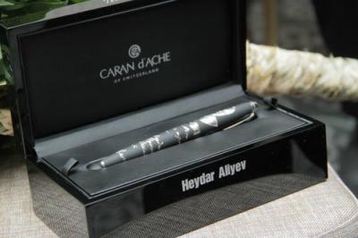 Qeyd edək ki, tanınmış "Caran d`Ache" şirkətinin məhsulu olan “Platin" qələmi yüksək beynəlxalq standartlara cavab verən, mürəkkəblə yazan qələmdir. Əl işi olduğundan hər bir qələm unikal və vahiddir.