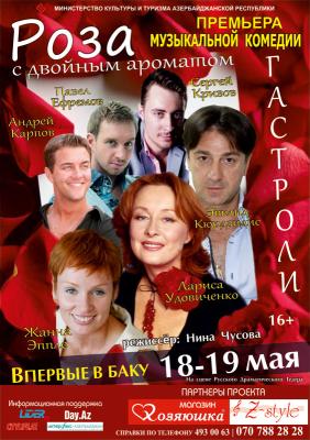 Yalnız 18 və 19 may Azərbaycan Dövlət Rus Dram teatrında məşhur teatr və kino artistinin iştirakı ilə "İki ətirli qızılgül" musiqli komediyasının premyerası olacaq.
