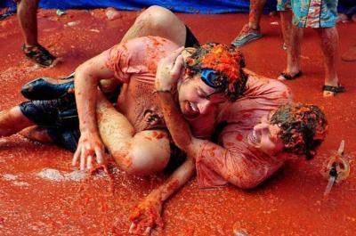 Çilinin Kinon şəhərinin sakinləri ənənəvi pomidor döyüşü təşkil edib. Onlar festivalda 70 ton pomidor məhsulunu bir-birinə atıb.