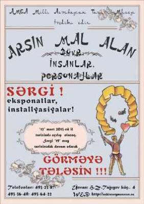 Milli Azərbaycan Tarixi Muzeyində "Arşın mal alan” operettasının 100 illiyinə həsr olunmuş sərgi açılacaq. Sərgi dahi Azərbaycan bəstəkarı Üzeyir Hacıbəyovun "Arşın mal alan” operettasının 100 illiyinə həsr olunub.