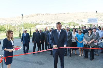 İlham Əliyev binanın istifadəyə verilməsini bildirən rəmzi lenti kəsdi.
