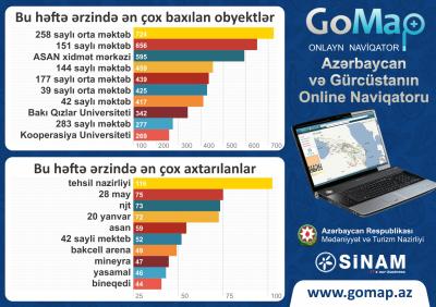 Oxucularımıza bu həftə ərzində GoMap.az portalında ən çox axtarılan və baxılan obyektlərin siyahısını təqdim edirik.