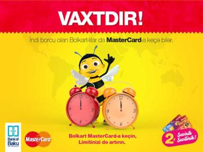 Bütün «Bolkart» sahiblərini «MasterCard» loqolu kartla təmin etmək məqsədi ilə «Bank of Baku» ASC müştərilərin cari kart borcunu saxlamaqla əvəzlənməsi prosesinə start verib.