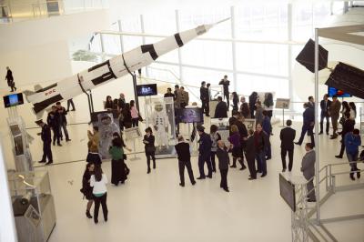 Sonra sərgi ilə tanış olmuşlar. Sahəsi 3500 kvadratmetr olan sərgidə yüzədək eksponat nümayiş etdirilir. Onların arasında kosmik stansiyalar, kosmosda olmuş aparatlar və Ay səthindən gətirilmiş orijinal daş parçası, müxtəlif peyklərin hissələri və onların maketləri, kosmonavt geyimləri və aksessuarları, meteoritlər və s. vardır.