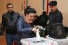 Bride and groom cast vote on wedding day in Qakh district of Azerbaijan.