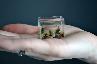 Created by Russian artist Anatoly Konenko, who specialises in miniatures, the tiny tank is made of glass, contains tiny stones and plants and is home to a group of tiny fish. It is just 30mm wide, 24mm high and 14 mm deep - enough to hold just 10ml of water, or about two tablespoons' worth.