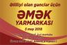 Mayın 5-də Gənclər və İdman Nazirliyi, Təhsil Nazirliyi, Əmək və Əhalinin Sosial Müdafiəsi Nazirliyi, Əlil Təşkilatları İttifaqı və UNEC-in birgə təşkilatçılığı ilə əlilliyi olan gənclər üçün əmək yarmarkası keçiriləcək.
