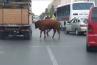 Вчера днем в Сумгаите произошел странный и в то же время смешной случай. Так, на светофоре, быку, находящемуся в небольшом грузовом автомобиле марки «Газель», удалось выбраться из грузовика.