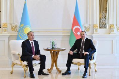 После церемонии официальной встречи в понедельник состоялась встреча Президента Азербайджана Ильхама Алиева и Президента Казахстана Нурсултана Назарбаева в узком составе.trend