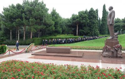 Sonra Şəhidlər xiyabanına gələn dəmiryolçular ölkəmizin azadlığı və suverenliyi uğrunda mübarizədə canlarından keçmiş qəhrəman Vətən övladlarının xatirəsini ehtiramla yad edib, “Əbədi məşəl” abidəsinin önünə əklil qoyublar.