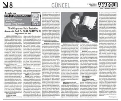 Türkiyənin “Anadolu” qəzetində tanınmış azərbaycanlı rejissor, Əməkdar İncəsənət Xadimi, professor Əflatun Nemətzadənin böyük musiqiçinin 100 illik yubileyinə həsr edilən geniş məqaləsi dərc olunub.