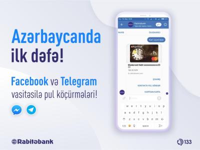 Rabitabank продолжает улучшать функциональность первого в Азербайджане банковского бота, свой продукт РабитаБот. Теперь, впервые в Азербайджане, Вы сможете отправлять деньги своим друзьям через широко используемые приложения Telegram и Facebook. Вы можете сделать это, даже если не знаете номера пластиковой карты своего друга, сообщает банк в среду.