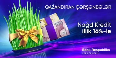 Milli bayramımız olan Novruz bayramı münasibətilə “Bank Respublika”nın başlatdığı “Qazandıran çərşənbələr” kampaniyası sona çatır. Dördüncü çərşənbə olan Torpaq çərşənbəsində Bank bayram xərclərini qarşılamaq və ya özlərini, eləcə də yaxınlarını sevindirmək istəyən müştərilərini sevindirəcək.