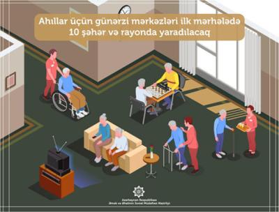Trend-in məlumatına görə, Sərəncamın icrası işləri çərçivəsində Əmək və Əhalinin Sosial Müdafiəsi Nazirliyinin sosial xidmət sifarişləri əsasında ilk mərhələdə 10 rayonda ahıllar üçün günərzi xidmət mərkəzlərinin yaradılması nəzərdə tutulub.