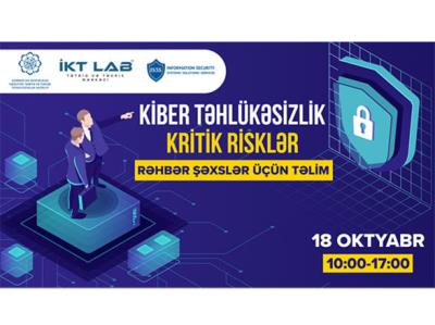Nəqliyyat, Rabitə və Yüksək Texnologiyalar Nazirliyinin dəstəyi, “İKT LAB” Tətbiq və Tədris Mərkəzinin və “IS3S” (Information Security Solutions) şirkətinin birgə təşkilatçılığı ilə rəhbər şəxslər üçün “Kibertəhlükəsizlik: kritik risklər” adlı təlim keçiriləcək.